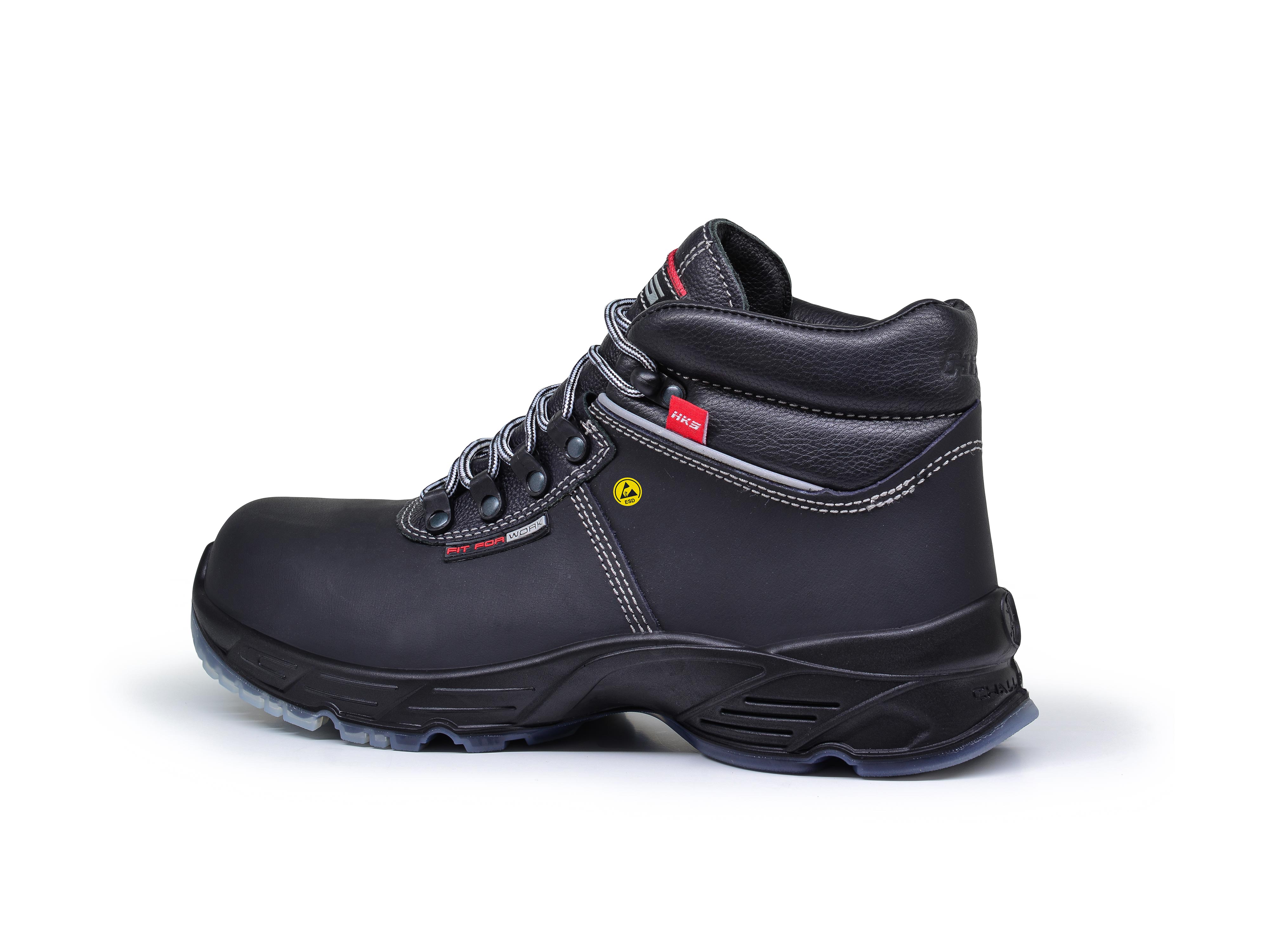 | Eigenschaften | Funktionen | Antistatisch | ESD, Klemmhaken, Optional: Ristschutz, Öl- & benzinresistent, Rutschsicherheit SRC, Staubschutzlasche, Umknickschutz, Warnschutz | Reflektoren, Wasserabweisend, Zehenbox (ergonomisch) |